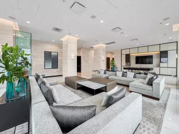 The interiors are a direct response to the building's dramatic architecture. High ceilings and floor-to-ceiling windows are maximized to flood the spaces with natural light and frame breathtaking views of the Chicago skyline and Lake Michigan. The design team used a palette of natural stone, high-quality wood, and luxurious finishes to create serene and elegant living spaces.